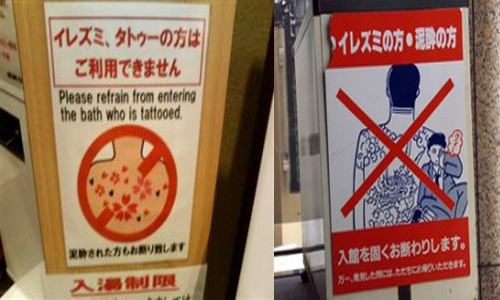 Đối với người dân Nhật Bản, họ thường nghĩ rằng những người có hình xăm là những người phạm tội, có dấu hiệu đe dọa. Nên họ thường hạn chế tiếp xúc xa lánh. Tại một số khu vực tại Nhật còn có biển cấm những người có hình xăm. Dù đó chỉ là một hình xăm nhỏ trên cổ tay, mắt cá tay hay dưới bắp tay hoặc nách. Thậm chí ở các khu vực bể bơi, phòng tập thể hình, suối nước nóng,…còn đề dòng chữ “cấm những người xăm hình”. Ở Nhật Bản, các nhân viên bảo vệ còn được đào tạo để phát hiện từ những hình xăm nhỏ, khó nhìn đến những hình xăm lớn.